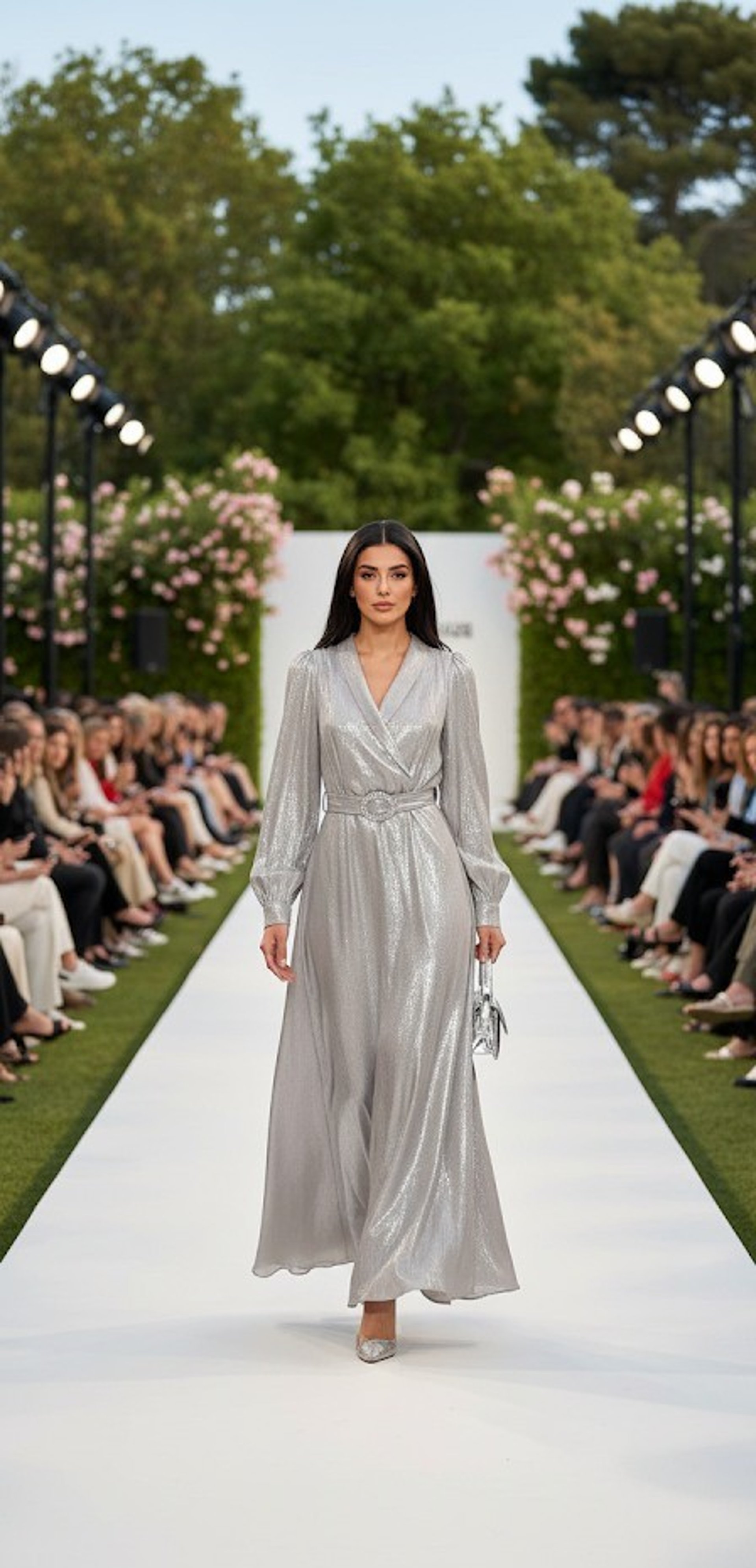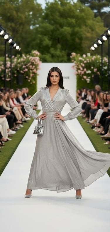 Elegant Long Sleeve Wrap Maxi Dress in Satin Gray